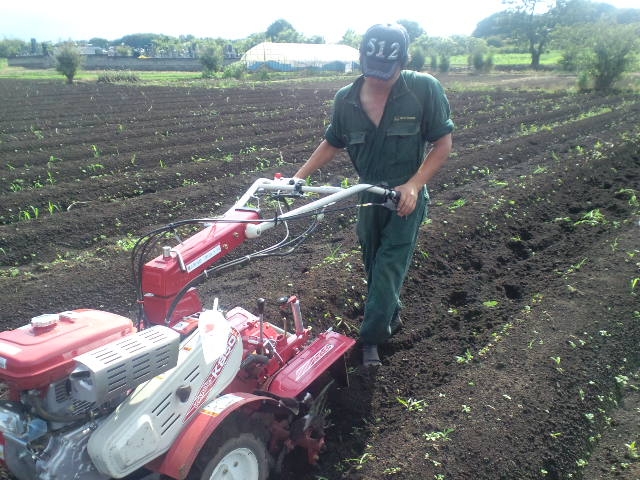 早朝から。毎日、まいにち。 安心と安全を自分の手で。 青空の下。広大な畑で山芋が収穫されます。